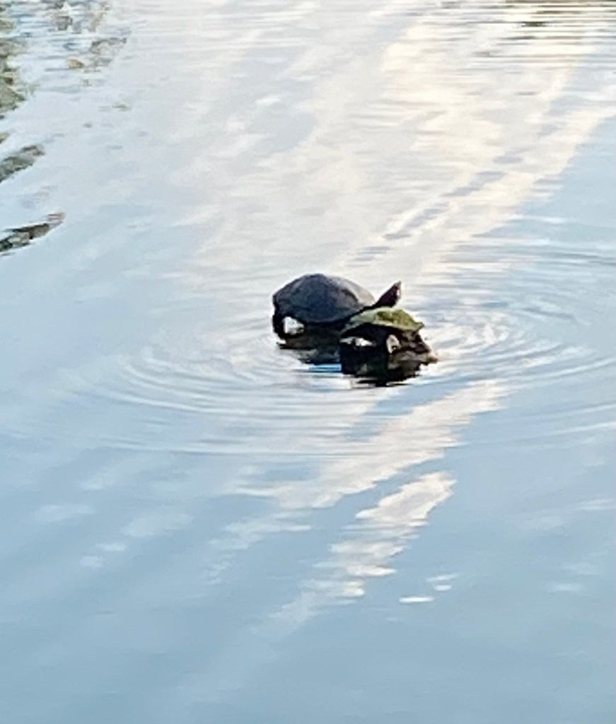 6/8 - Turtle Friends Two friends hanging out Swam out to the floating log Stretching out their necks