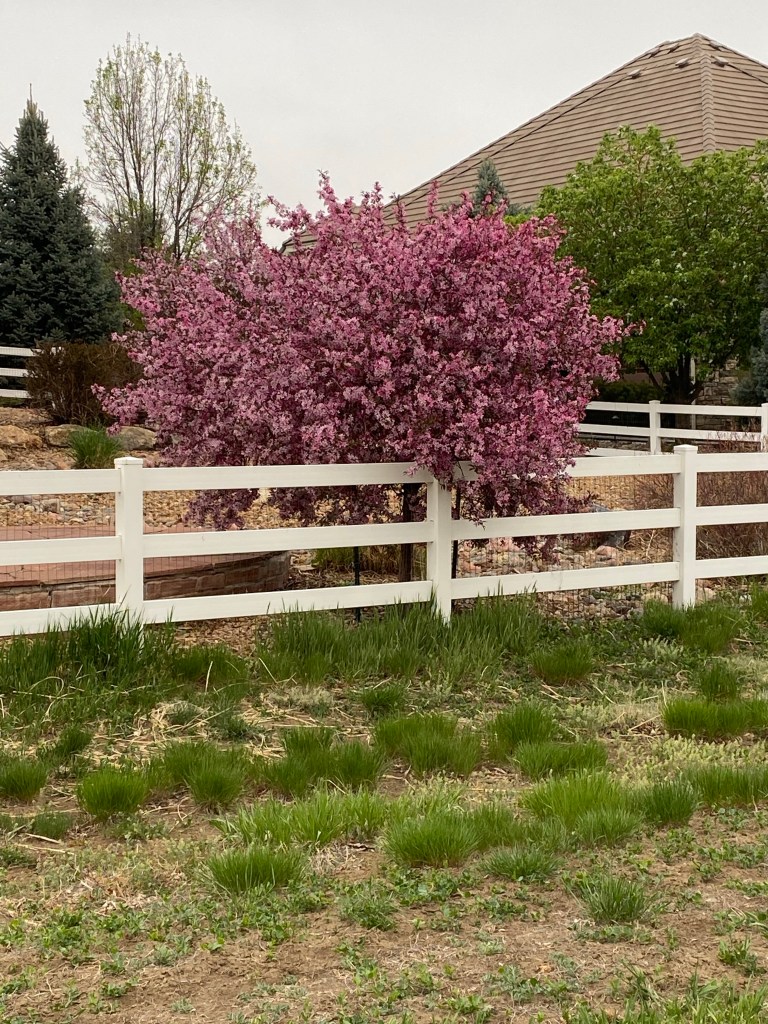 5/10 - Pretty in Pink Pink blossoms to delight On this grey, gloomy, wet day A tree dressed for fun