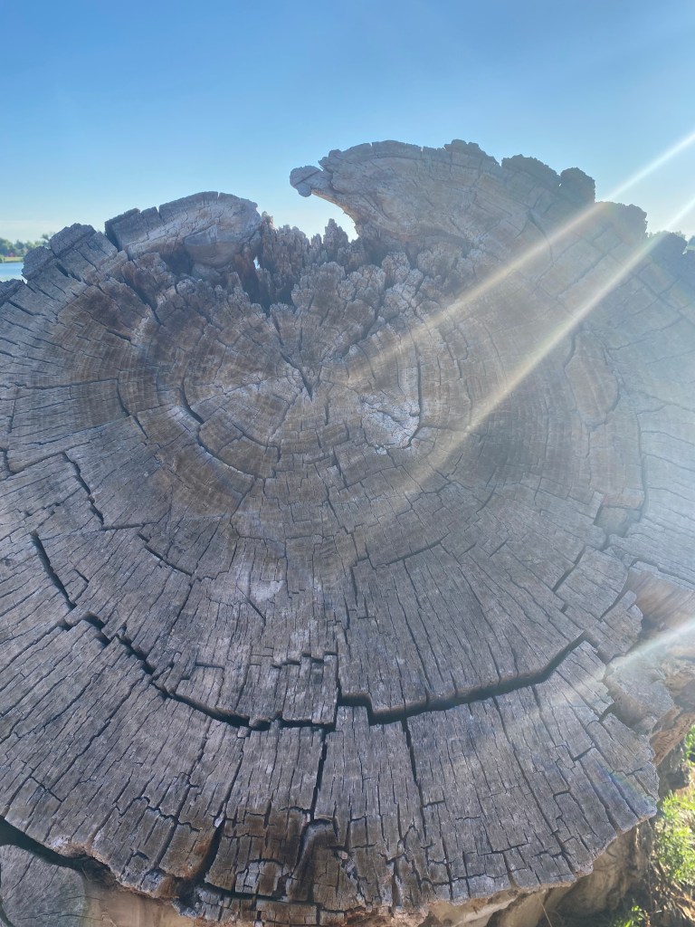 7/10 - Rings of Life One ring is enough for some, but others collect them throughout their life Several years ago an old tree and fallen across the path and had to be cut in half so the trail could still be used. The morning sun seemed to be shining down to highlight the trees long life.