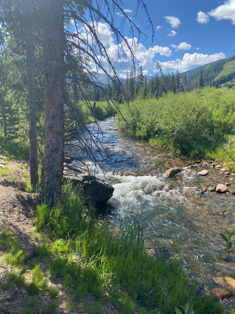 7/28 warm day mountain bliss cool water rushing down stream doesn't stop to breath