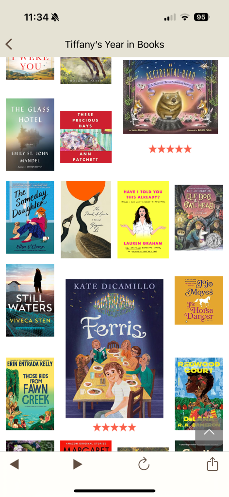 With the end of 2024 came my results for my reading challenge. I set a goal of reading 60 books in 2024 and ended up reading 90 books. They covered a wide range of genres. I read a couple of picture books that caught my attention. The Accidental Hero – A Mostly True Wombat Story by Laura Roettiger (Debbie Palen illustrated) was a sweet little story about a not so sweet big fire in Australia. The Ofrenda That We Built by Jolene Gutierrez and Shaian Gutierrez (Gabby Zapata illustrated) taught me about the Day of the Dead and family traditions. Both great picture books but very different. My favorite books to read are in the middle grade category. These are books for kids between 8 and 12 years old. Some of the national authors like Kathrine Applegate, Kate DiCamillo, Erin Entrada Kelly, and Lynne Kelly did not disappoint, but some local authors treated me to some great reads as well. I always love Boulder author Claudia Mills and savored her multi-generational book The Last Apple Tree. The last two books in the Book Scavenger series by Jennifer Chambliss Bertman did not let me down for some fun kid-lit adventures. This year I even read some YA (young adult books). Another local author, Ellen O’Clover, entertained me with her awkward summer after high school of self discovery book The Someday Daughter. And I discovered an author who shares the same last name as me, but we don’t seem to be related. Better than the Movies by Lynn Painter gave the same good vibes as all those high school movies from the 80’s. I did read adult books, and lots of them. I proved that I will read just about anything and love to see different ways authors are creative. A few favorite authors from my year of reading include: Ann Napolitano (Hello Beautiful and Dear Edward), Amor Towles (The Lincoln Highway and Table for Two), Ann Patchett (everything fiction and non fiction), Chris Whitaker (All the Colors of the Dark) and even Steven King (On Writing: A Memoir of the Craft). Overall it was a great year to get lost in a book. My TBR (to be read) stack is ready to kick of 2025. First up is Wellness by Nathan Hill, a gift from my son. Happy reading everyone.