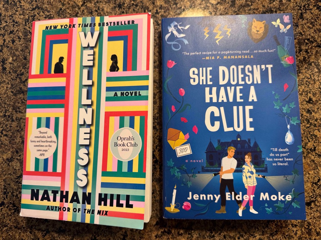 I just finished reading two books that, together, sum up life. The first one was Wellness by Nathan Hill. This book has a lot of great reviews and everyone loved it. It even had Oprah’s stamp of approval. But I had to force myself to read it at times. It had stories of depressing childhoods, family drama, marriage struggles, social media wars, and even scientific studies. It basically covered most elements of life. The writing was good and the plots were creative in the way they came together, but it was a tad heavy. The second book, She Doesn’t Have a Clue by Jenny Elder Moke was a lighthearted rom-com, murder mystery. It was funny and punny in the most delightful way. I loved curling up with a blanket and my cats during the dark days of January to escape into the ridiculousness of this story. I don’t see Oprah slapping her sticker on this one. The lack of sticker is what got me thinking. Why is it that the heavier the topic the more awards something gets, books or movies? Isn’t life stressful enough? Don’t we all crave laughter, fun, and happiness? I read across genres and age categories. I get a solid mix between heaviness and lightness. I must confess, I enjoy the feeling I get from reading fun books more. I will still read the thought-provoking ones, but I don’t want to have to hide my love for what’s fun. Society seems to look down on beach reads, comedies, and rom-coms in favor of the “more meaningful” books, but after the January we just had, I’m tired of deep thinking. I’m off to find another book to make me laugh.